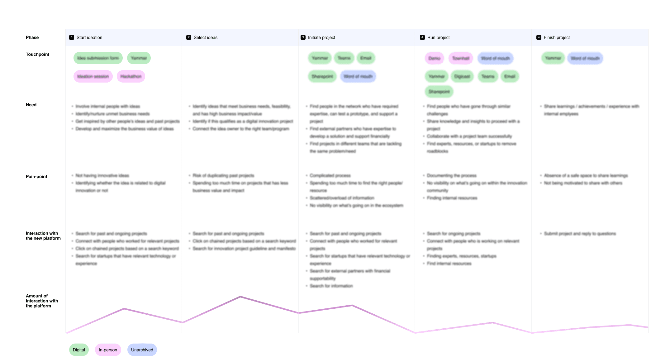 User research, Research analysis, Conceptualization, Stakeholder management, Prototyping, User testing